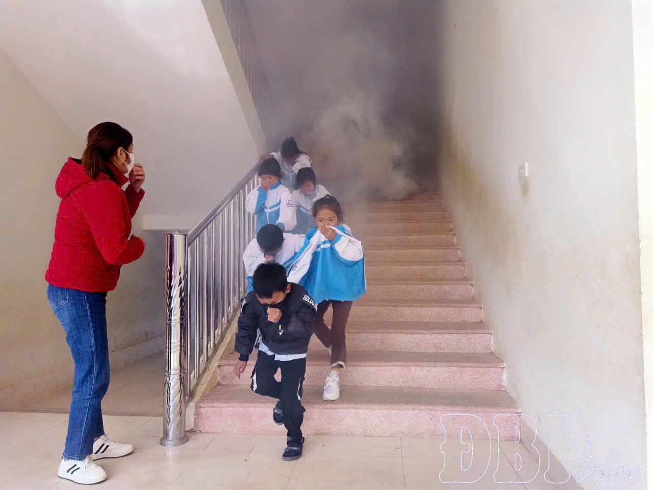 Phần thực hành phương án PCCC&CNCH được triển khai trực quan với tình huống giả định cháy tại khu vực phòng học. Dưới sự hướng dẫn của cán bộ nghiệp vụ, giáo viên, học sinh thực hành thao tác sử dụng bình chữa cháy, di chuyển thoát nạn theo phương án và phối hợp xử lý các tình huống phát sinh. Các hoạt động thực hành giúp nhà trường nâng cao khả năng chủ động, sẵn sàng ứng phó khi có sự cố.