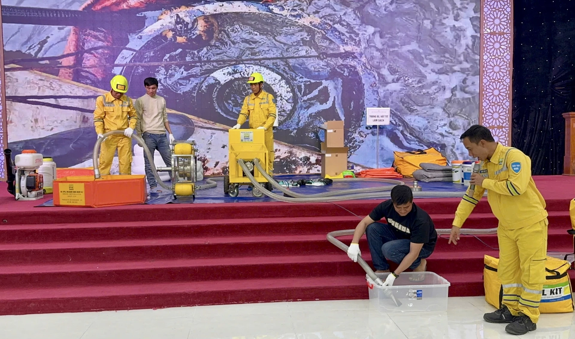 Các học viên còn được Trung tâm Ứng phó sự cố môi trường Việt Nam giới thiệu, hướng dẫn thực hành về sử dụng một số trang thiết bị, vật tư chuyên dụng trong ứng phó sự cố tràn dầu.