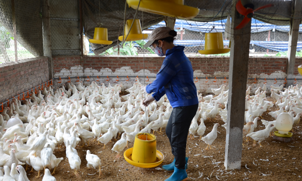 Mô hình nuôi gà an toàn sinh học của gia đình bà Nguyễn Thị Liên, phường Từ Sơn.