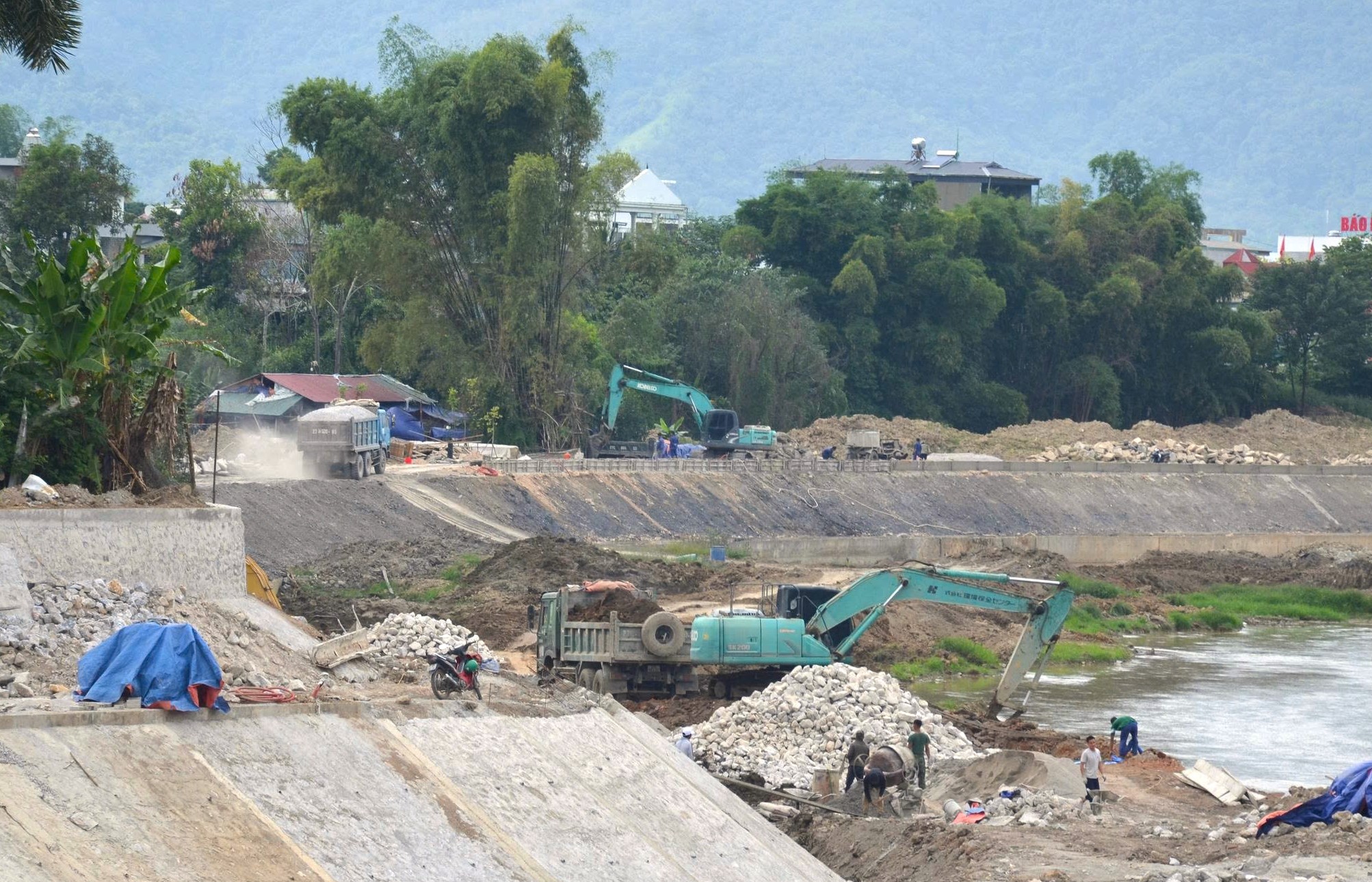 Nhà thầu thi công đẩy nhanh tiến độ thực hiện Dự án Quản lý đa thiên tai lưu vực sông Nậm Rốm.