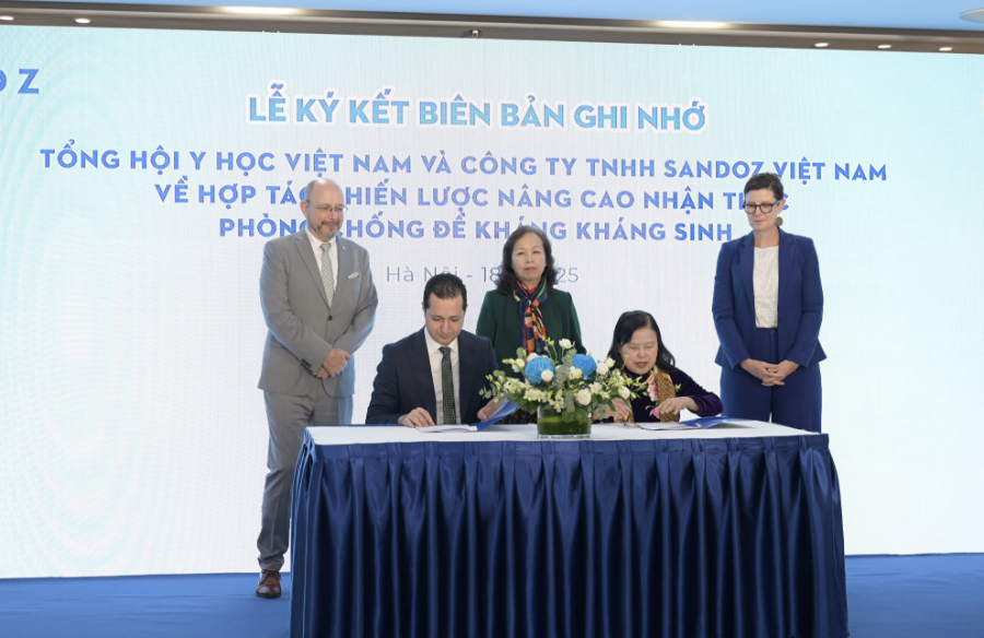 Nhận thức rõ rằng AMR không phải là vấn đề mà một cá nhân hay tổ chức đơn lẻ có thể giải quyết, ngày 18/11, Sandoz Việt Nam và Tổng hội Y học Việt Nam (VMA) đã ký kết Thỏa thuận Hợp tác nhằm triển khai chiến dịch “Nâng cao nhận thức về Đề kháng kháng sinh” nhằm hỗ trợ trực tiếp cho Chiến lược quốc gia về phòng, chống kháng kháng sinh tại Việt Nam giai đoạn 2023 – 2030, với phương thức tiếp cận “Một Sức khỏe” (One Health).