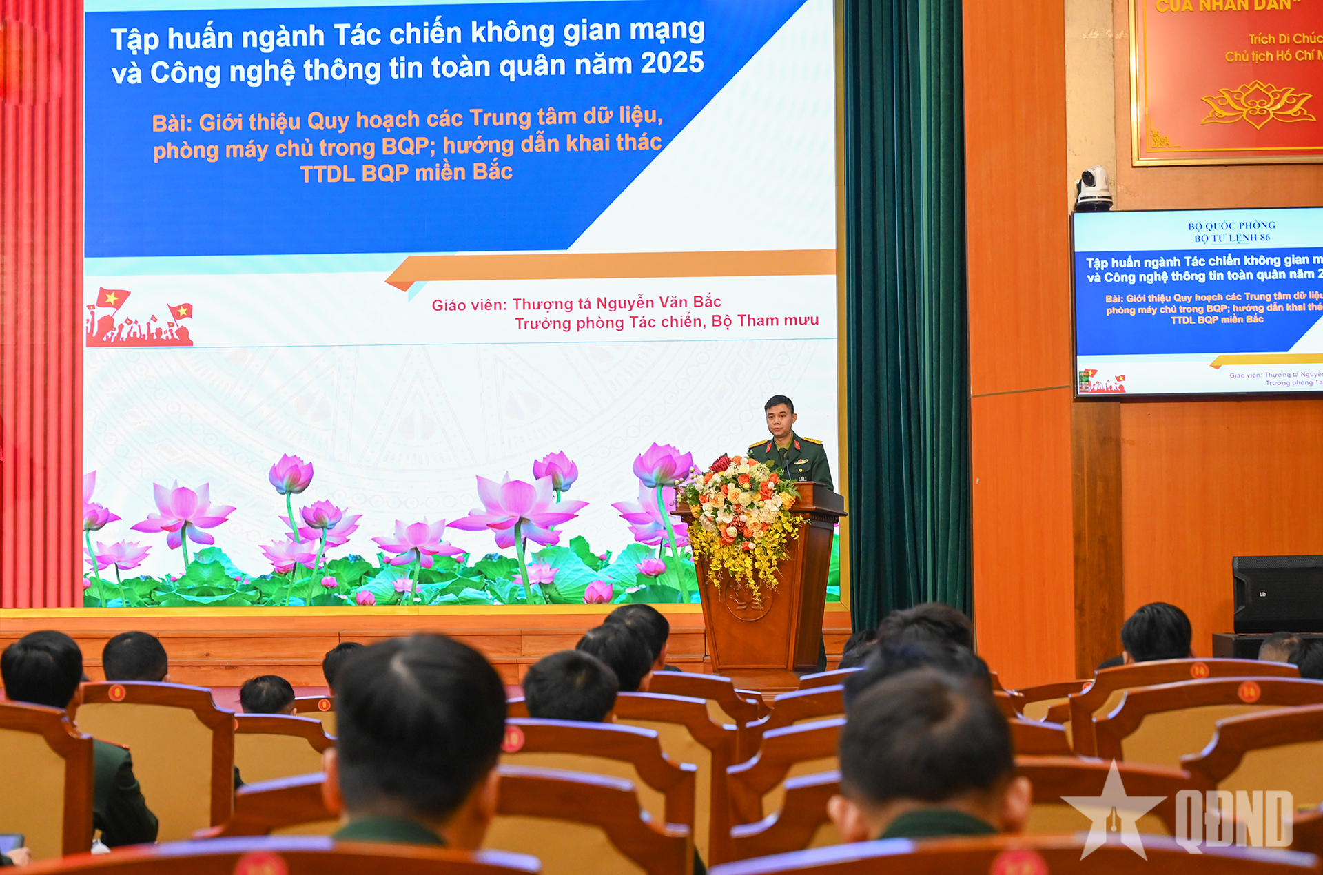 Nội dung tập huấn bao gồm các chuyên đề: Công tác tham mưu giới thiệu quy hoạch các trung tâm dữ liệu, phòng máy chủ trong Bộ Quốc phòng và hướng dẫn khai thác trung tâm dữ liệu; hướng dẫn thực hiện Thông tư số 113/2025/TT-BQP, ngày 27-10-2025 của Bộ trưởng Bộ Quốc phòng quy định phân cấp trình độ chuyên sâu của lực lượng tác chiến không gian mạng trong Quân đội nhân dân Việt Nam.