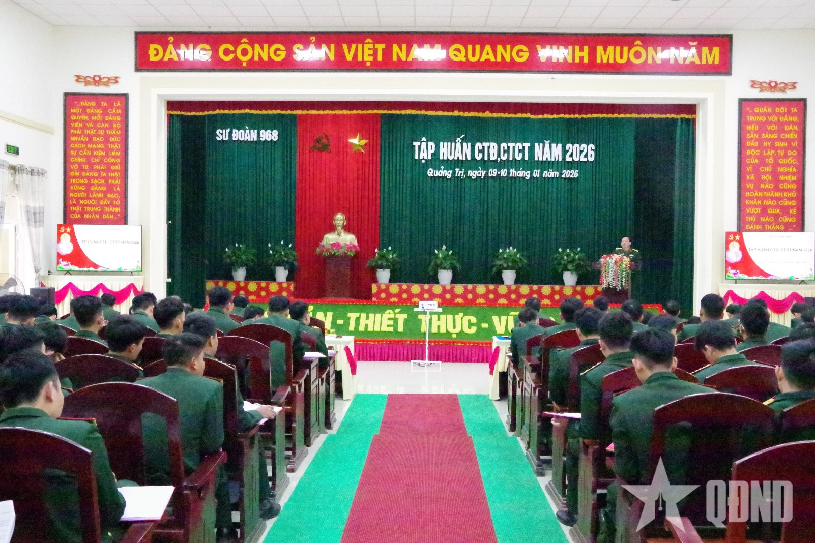 Phát biểu khai mạc tập huấn, Đại tá Nguyễn Chính Triều, Phó chính ủy Sư đoàn 968 nhấn mạnh: Tập huấn CTĐ, CTCT nhằm bồi dưỡng, nâng cao trình độ, thống nhất nội dung, phương pháp tiến hành CTĐ, CTCT cho đội ngũ bí thư, cấp ủy viên, cơ quan chính trị, cán bộ chính trị các cấp trong toàn Sư đoàn, từ đó nâng cao chất lượng hoạt động CTĐ, CTCT trong thời gian tới.