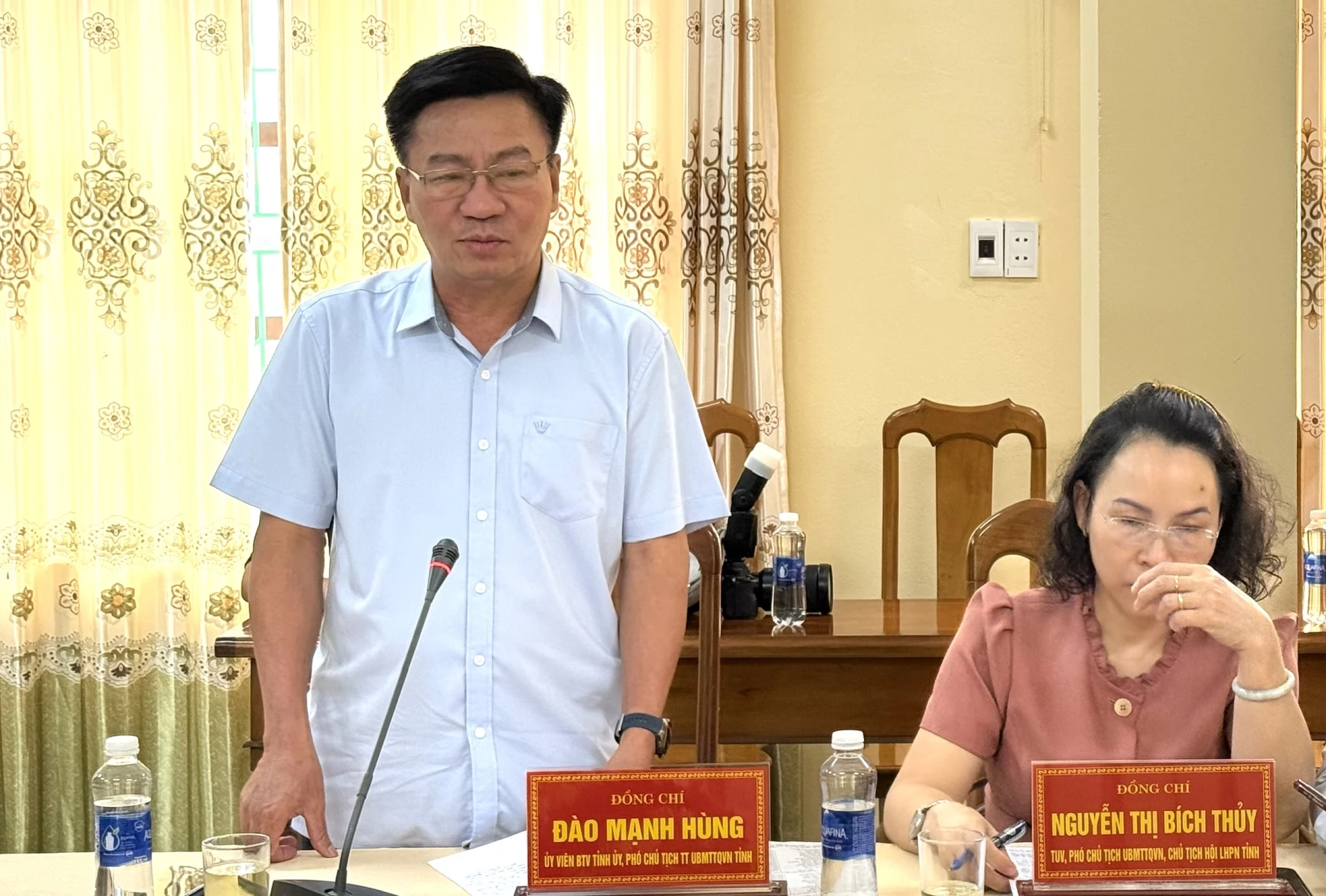 Đồng chí Đào Mạnh Hùng, Phó Chủ tịch Thường trực Ủy ban MTTQ Việt Nam tỉnh phát biểu tại buổi làm việc - Ảnh: N.L