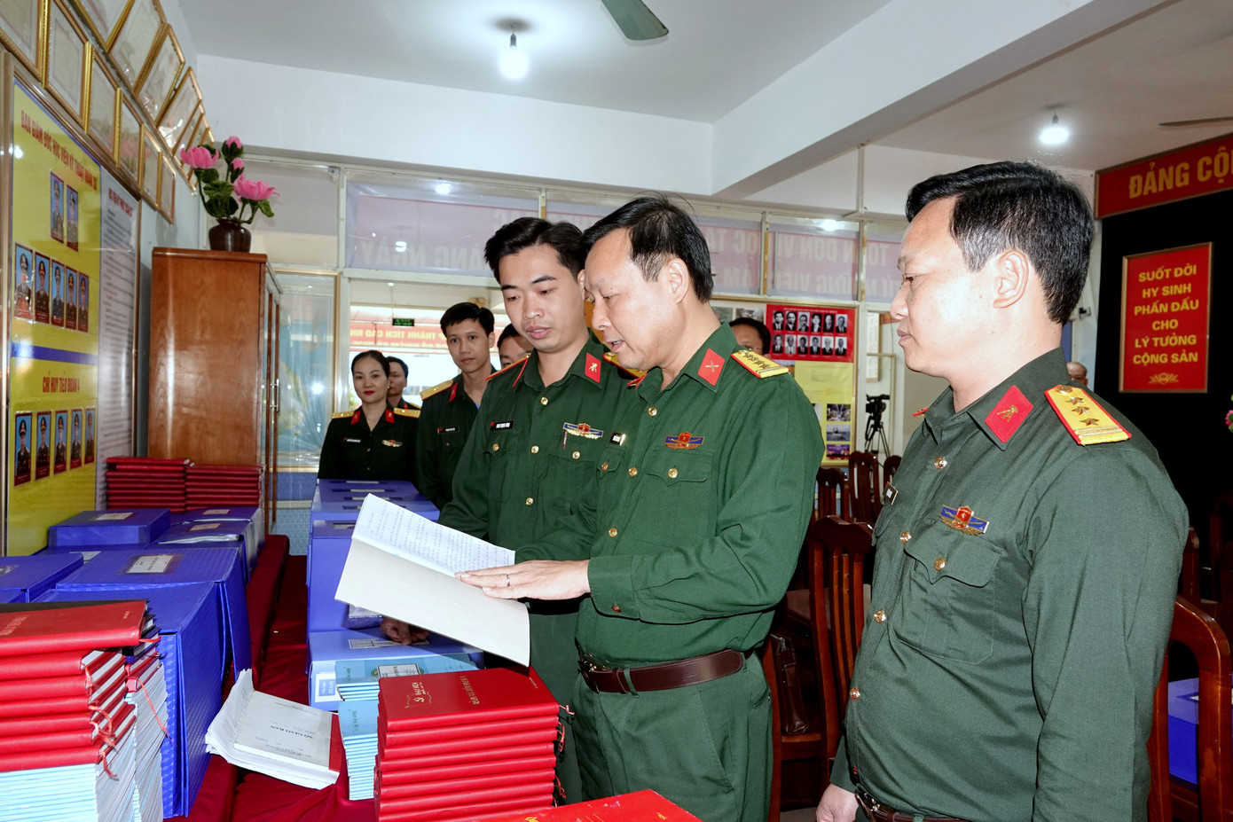 Lãnh đạo Ban Thanh niên Quân đội kiểm tra Tủ sách Pháp luật tại Tiểu đoàn 4, Học viện Kỹ thuật Quân sự.