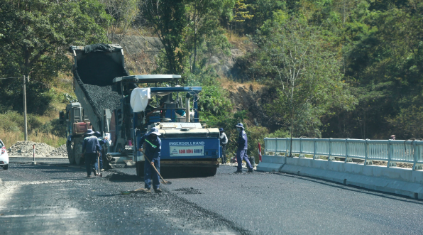 Thảm nhựa trên Quốc lộ 28B. Ảnh: Báo Lâm Đồng