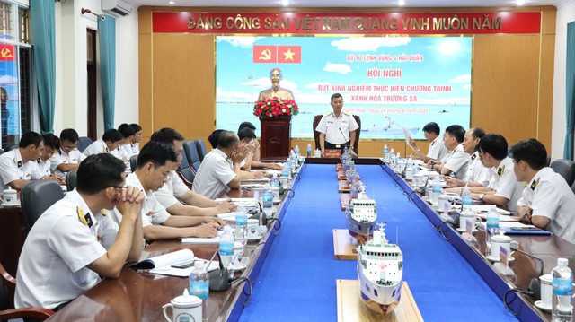 Ngày 24/4, Vùng 4 Hải quân tổ chức hội nghị rút kinh nghiệm thực hiện chương trình "Xanh hóa Trường Sa" năm 2025 và quý I/2026. Chuẩn Đô đốc Nguyễn Anh Tuấn, Tư lệnh Vùng chủ trì hội nghị.