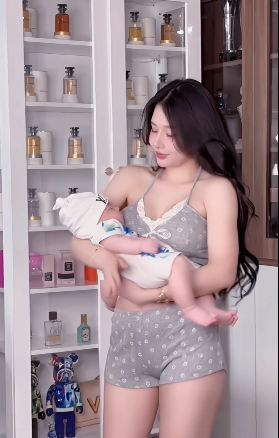 Gần đây, mạng xã hội xôn xao trước một đoạn video ghi lại khoảnh khắc một bà mẹ trẻ bế con. Điều khiến video này nhanh chóng thu hút hơn 2 triệu lượt xem chính là nhan sắc xinh đẹp và vóc dáng nóng bỏng "như chưa từng sinh nở" của cô gái. (Ảnh: FBNV)