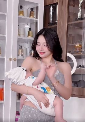 Mẹ bỉm sữa gây sốt này là Huyền Trang, được biết đến với biệt danh "Bé Chang" trên TikTok. Cô là một hot girl, streamer và chủ kinh doanh shop thời trang có phong cách gợi cảm, thu hút hơn 20 nghìn người theo dõi. (Ảnh: FBNV)