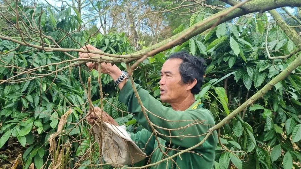 Đưa tay bẻ những cành sầu riêng khô, ông Hà tỏ vẻ lo lắng. Bởi sầu riêng là cây lâu năm, có giá trị kinh tế cao, việc trồng, chăm sóc rất tốn thời gian, công sức. Việc hàng chục cây sầu riêng bị chết không chỉ gây thiệt hại tức thời mà còn khiến gia đình ông Hà mất nguồn thu trong nhiều năm tới.