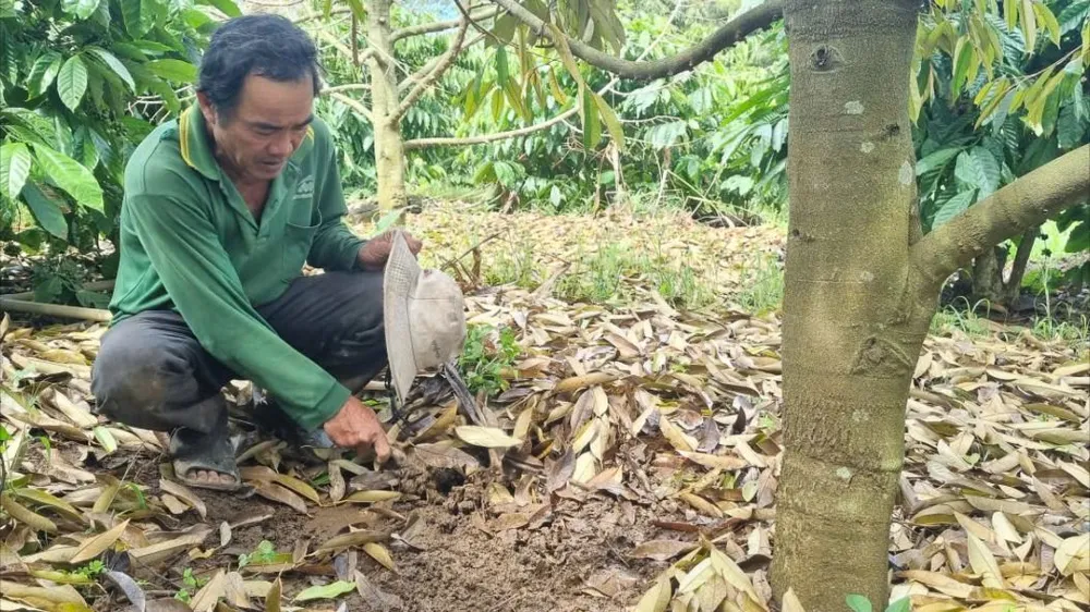 Theo ông Toàn, khi nắng lên, thống kê hết thiệt hại, ông sẽ đào bỏ những gốc sầu riêng bị chết rồi xử lý đất để trồng lại. Tuy nhiên, ông chưa biết tính toán phương án nào phù hợp để trồng.