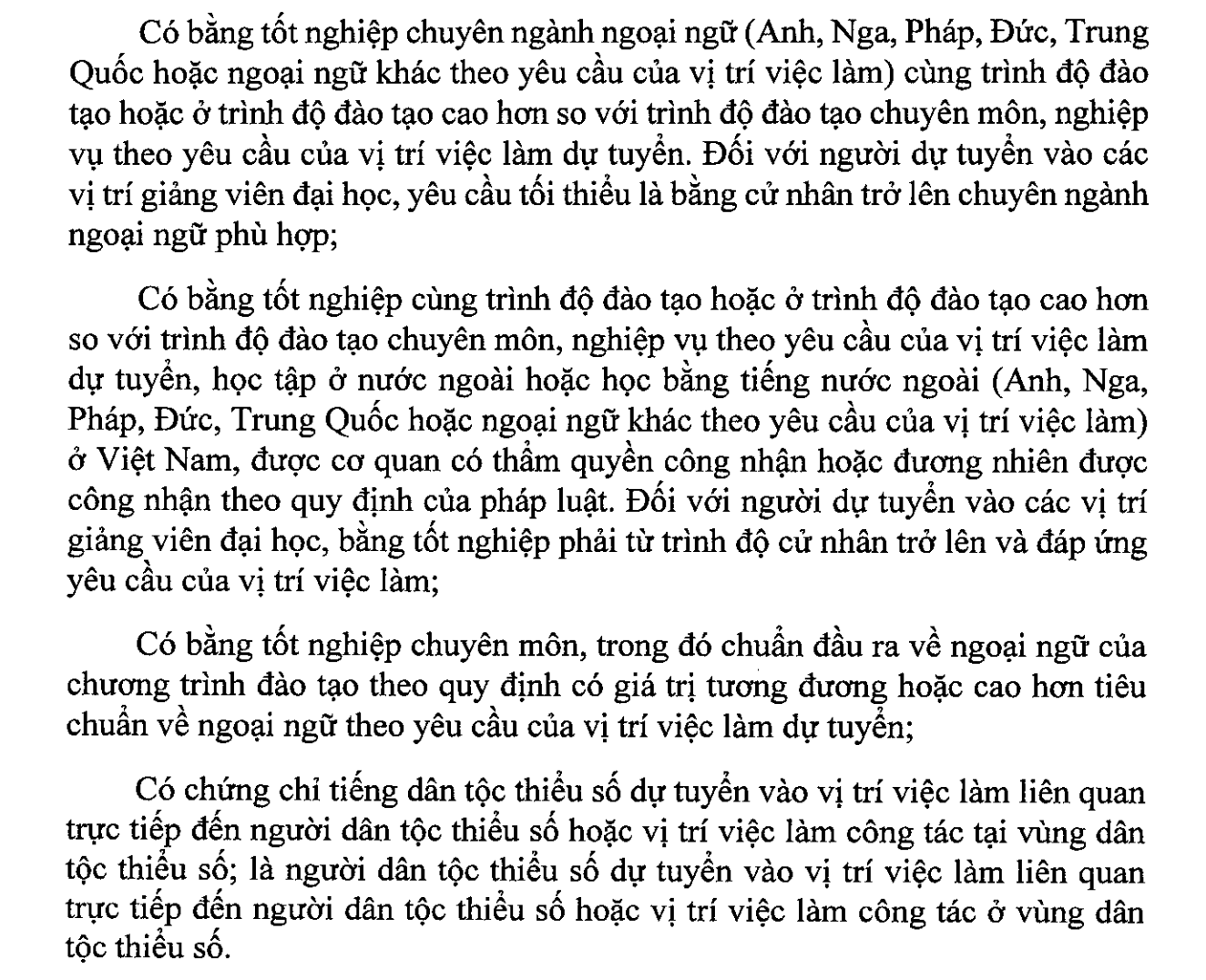 Với những trường hợp không được miễn thi ngoại ngữ, Hội đồng tuyển dụng tổ chức sát hạch để đánh giá năng lực ngoại ngữ hoặc tiếng dân tộc thiểu số. Vòng 2 của xét tuyển được thực hiện theo đúng quy định như hình thức thi tuyển.