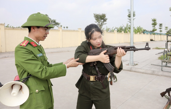 Nữ chiến sĩ Hoàng Ngọc Anh, quê ở Triệu Sơn, Thanh Hóa đã tốt nghiệp Đại học Thương mại loại khá, từng là giáo viên tiếng Anh thể hiện quyết tâm sẽ rèn luyện thật tốt để có thể chính thức đứng trong hàng ngũ CAND. “Chúng em là nữ, rèn luyện dưới trời nắng gắt hoặc mưa rào cũng ảnh hưởng đến sức khỏe. 2 tuần đầu chúng em được rèn luyện các môn về chính trị, võ thuật. Các môn này nâng cao sức khỏe cho chúng em rất nhiều. Mấy hôm đầu, chúng em tập võ về rất đau người nhưng khi vượt qua thì thấy cơ thể nhẹ nhàng, khỏe mạnh hơn hẳn, tinh thần tốt hơn. Hiện chúng em đang tập bắn súng, các bài võ CAND…”.