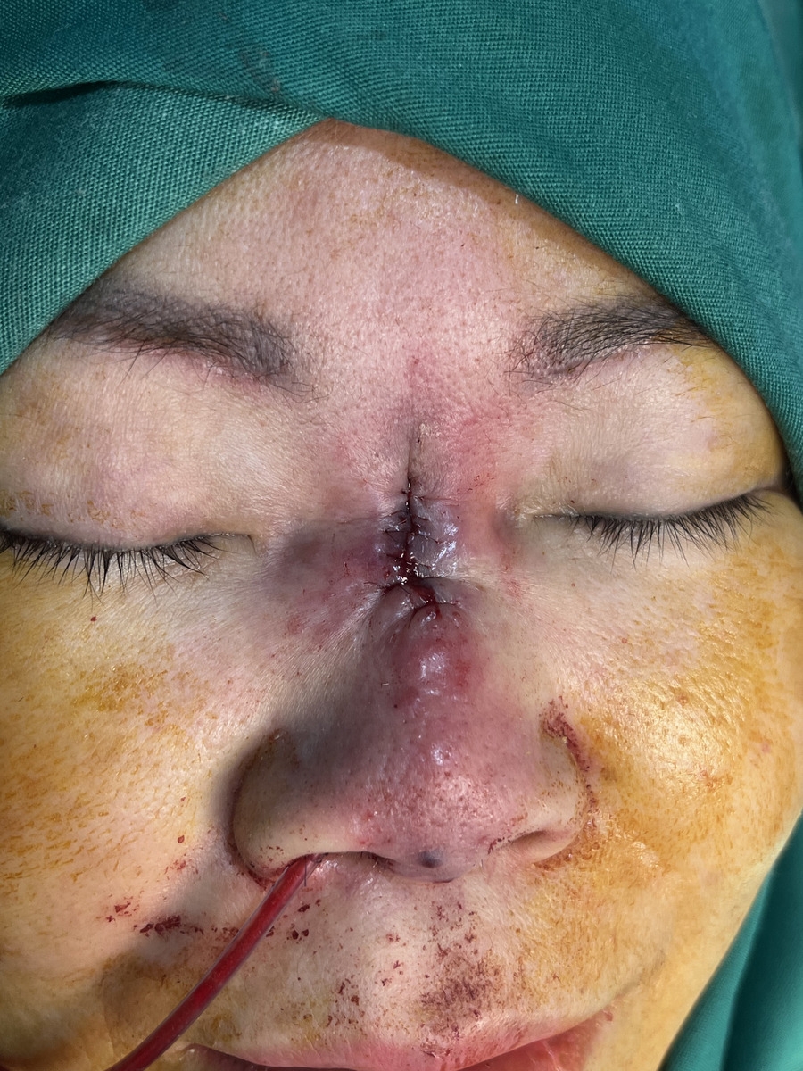Theo TS.BS Nguyễn Phan Tú Dung, Giám đốc Bệnh viện JW, bệnh nhân bị hoại tử lan sâu, mô mũi bị viêm, sưng nề, tắc mạch máu. Ê-kíp phải nạo mô chết, kiểm soát nhiễm trùng và lên kế hoạch tái tạo mũi nhiều giai đoạn. Nếu chậm vài ngày, bệnh nhân có thể mất toàn bộ phần mũi, thậm chí ảnh hưởng thị giác và đường thở. Hiện sức khỏe bệnh nhân đã tạm ổn định, tiếp tục điều trị kháng sinh.
