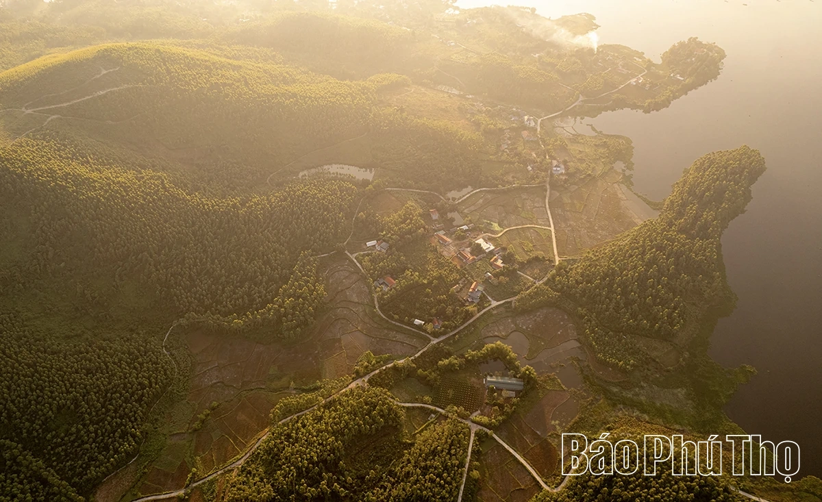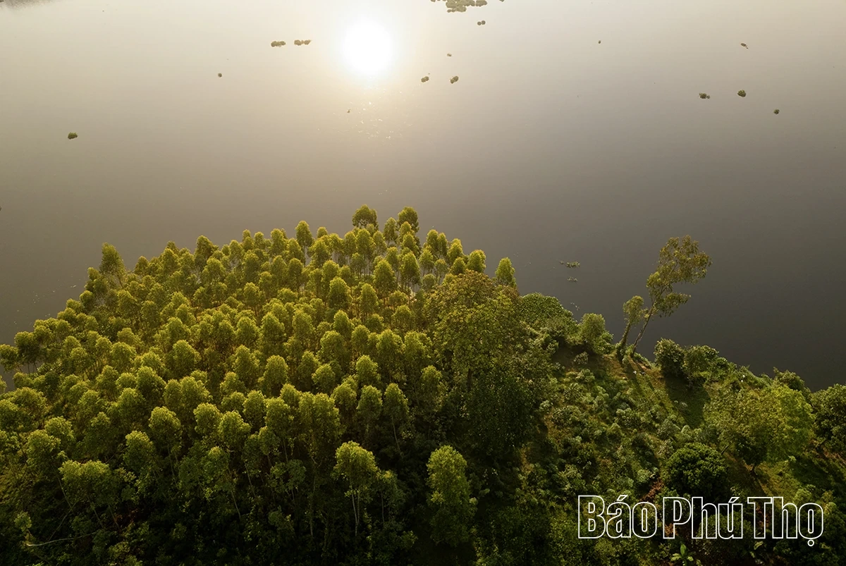 Hồ Vân Trục trong nắng sớm khoác lên mình vẻ đẹp thanh khiết và yên bình.