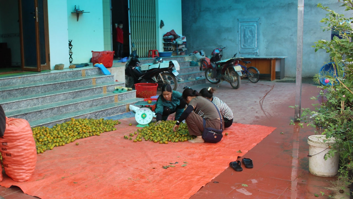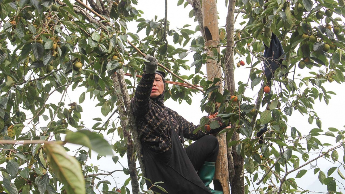 Thương lái tìm đến tận bản để thu mua quả hồng không hạt