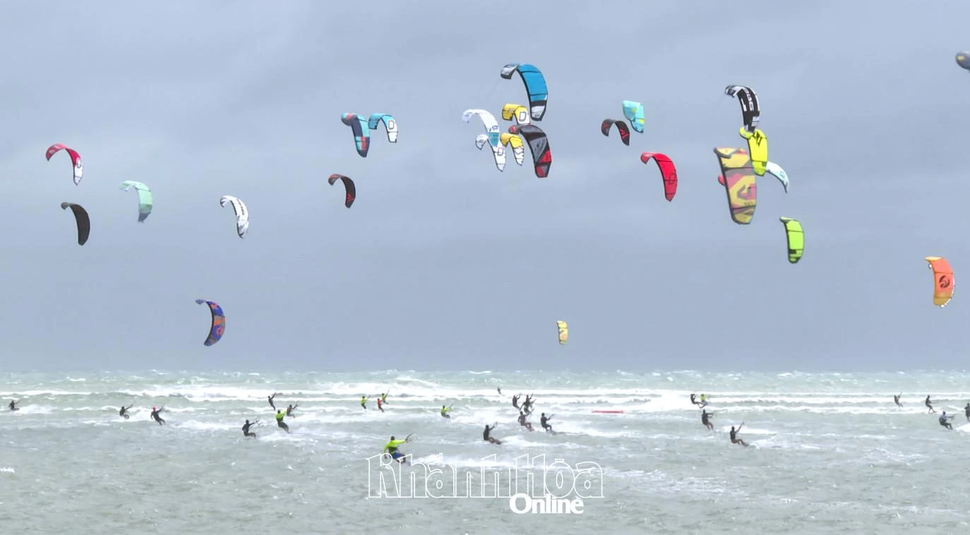 Rất đông người dân, du khách yêu thích môn thể thao lướt ván diều tại khu vực bãi biển thôn Mỹ Hòa, xã Vĩnh Hải.