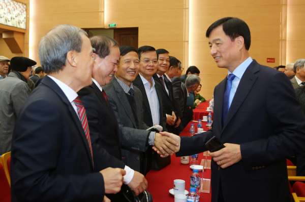 Bí thư Thành ủy Hà Nội Nguyễn Duy Ngọc và các đại biểu tham dự buổi gặp mặt.