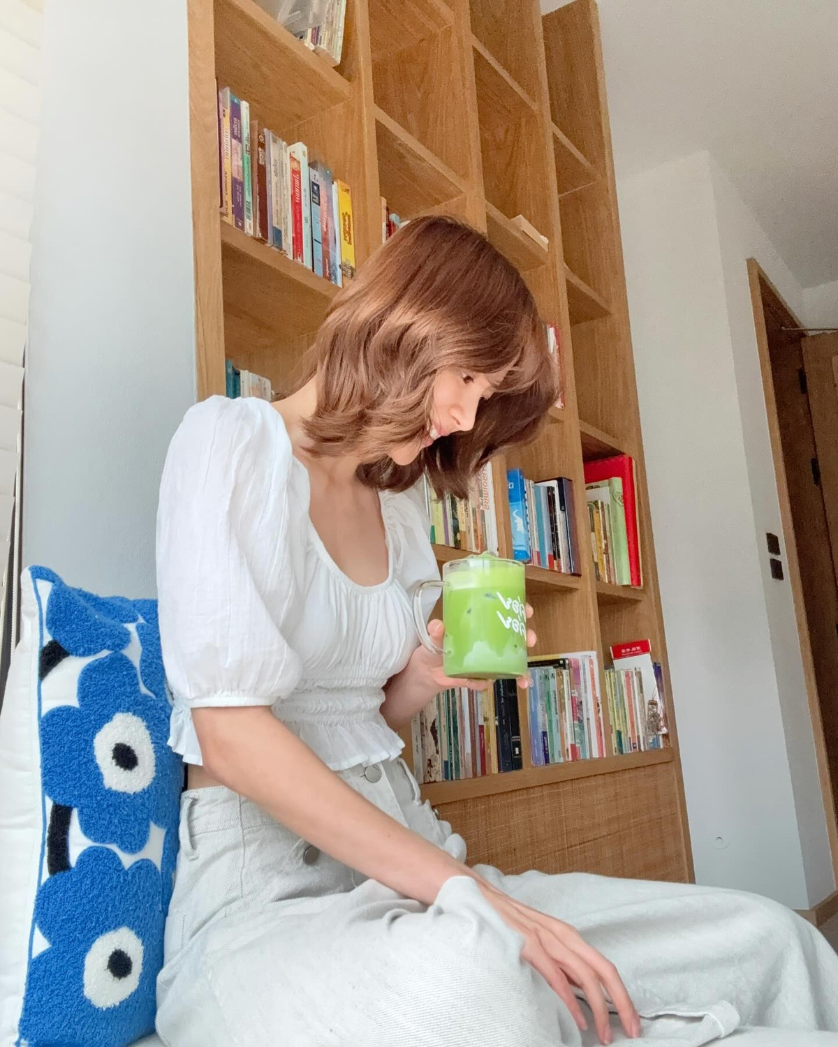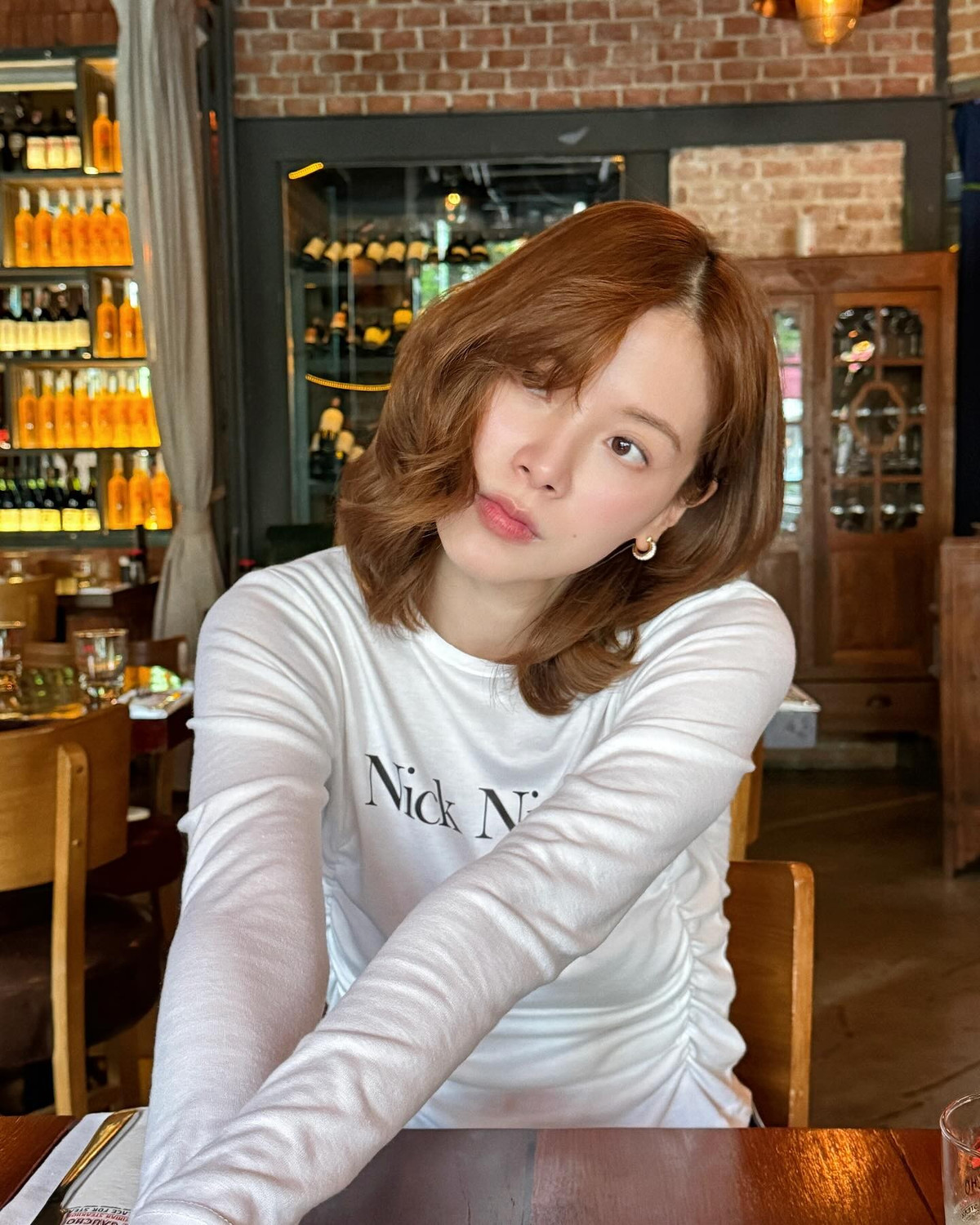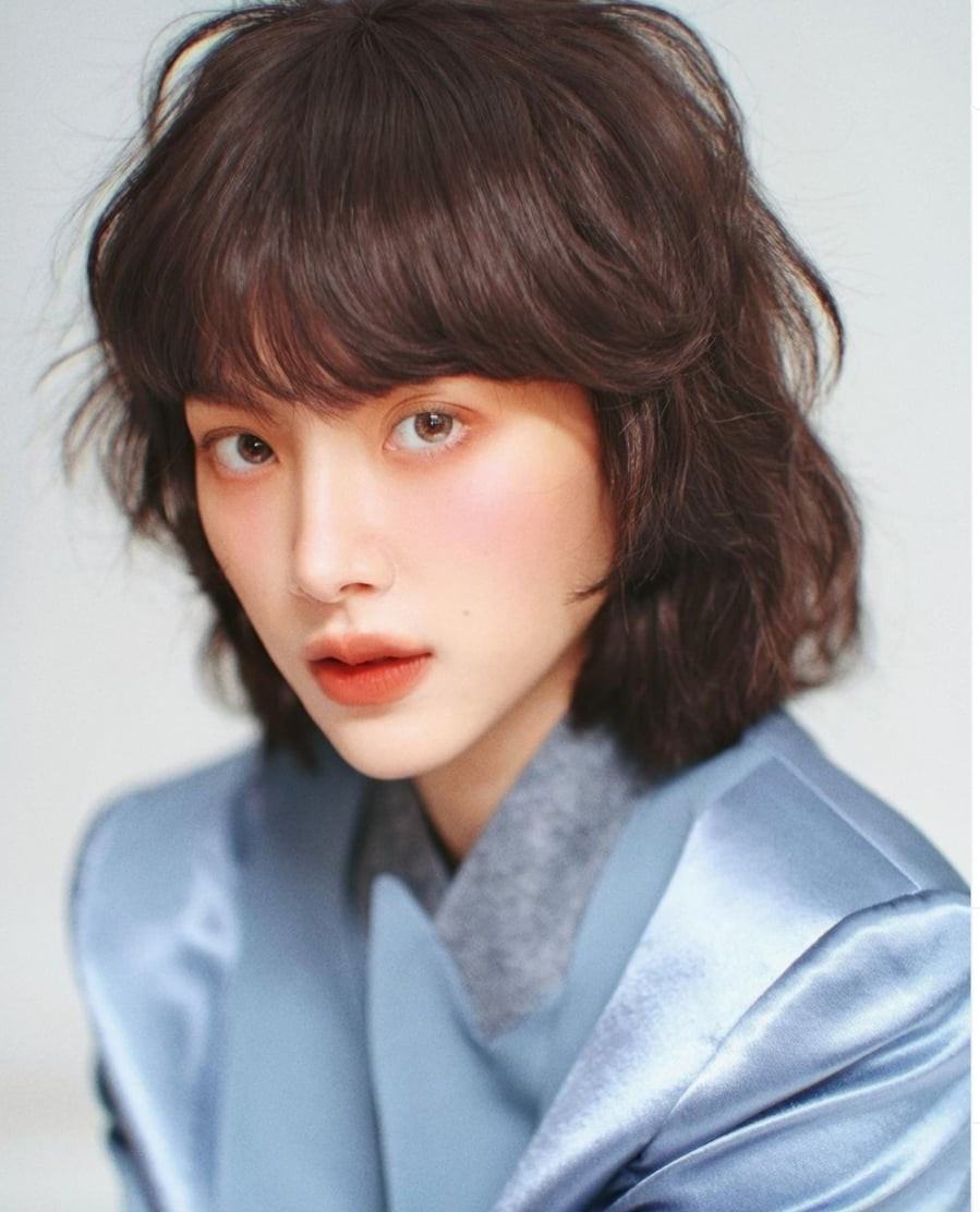 Mái tóc ngắn bồng bềnh, kết hợp màu nâu trầm nhẹ nhàng, khiến gương mặt cô thêm sáng, tôn lên làn da mịn màng và đôi mắt cuốn hút.