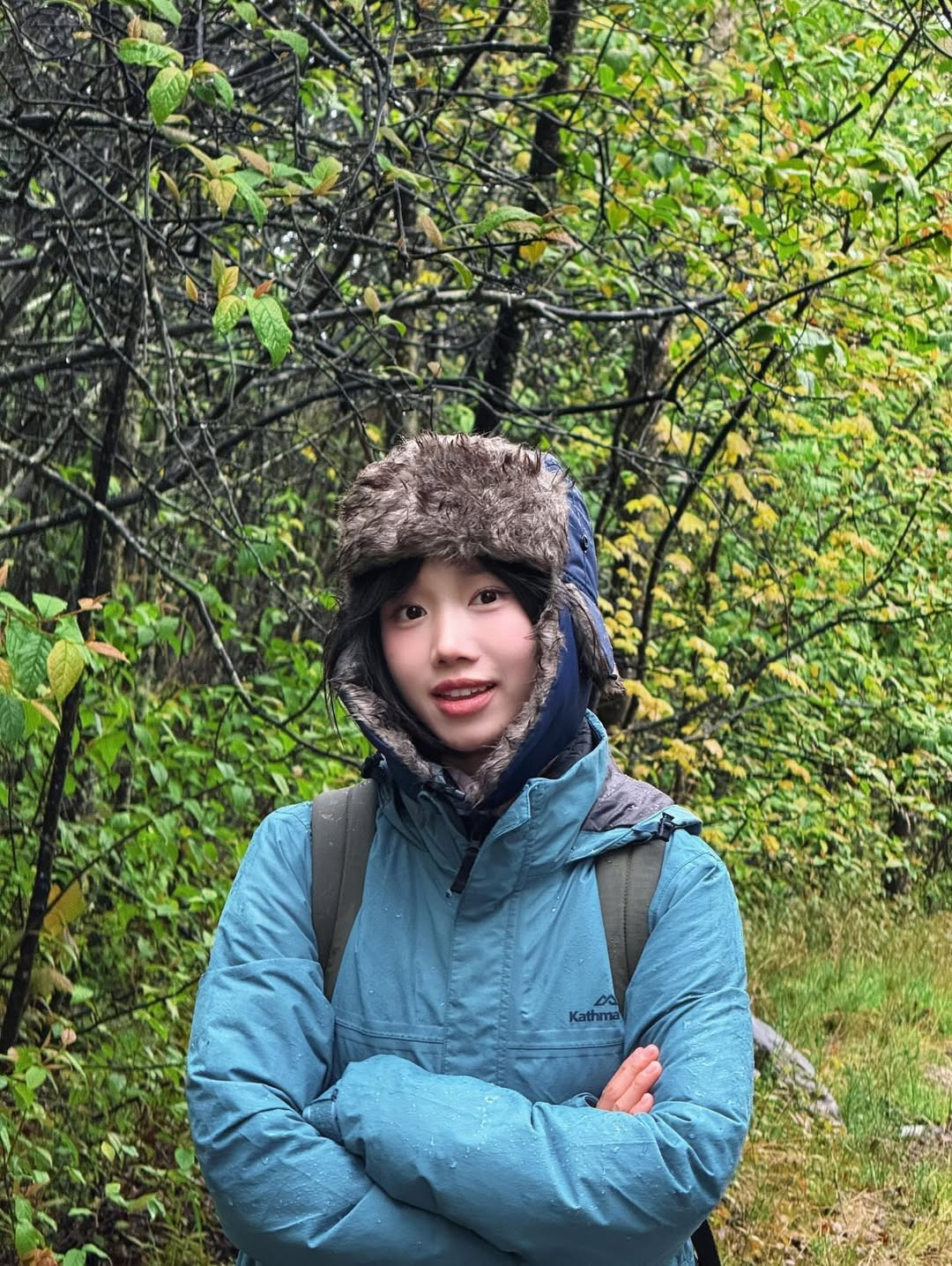 Trong các bức ảnh khác, cô nàng diện áo khoác ngoài màu xanh da trời, đội mũ len và mang ba lô, sẵn sàng cho những chuyến đi bộ đường dài (trekking) giữa thung lũng và núi tuyết. (Ảnh: IGNV)