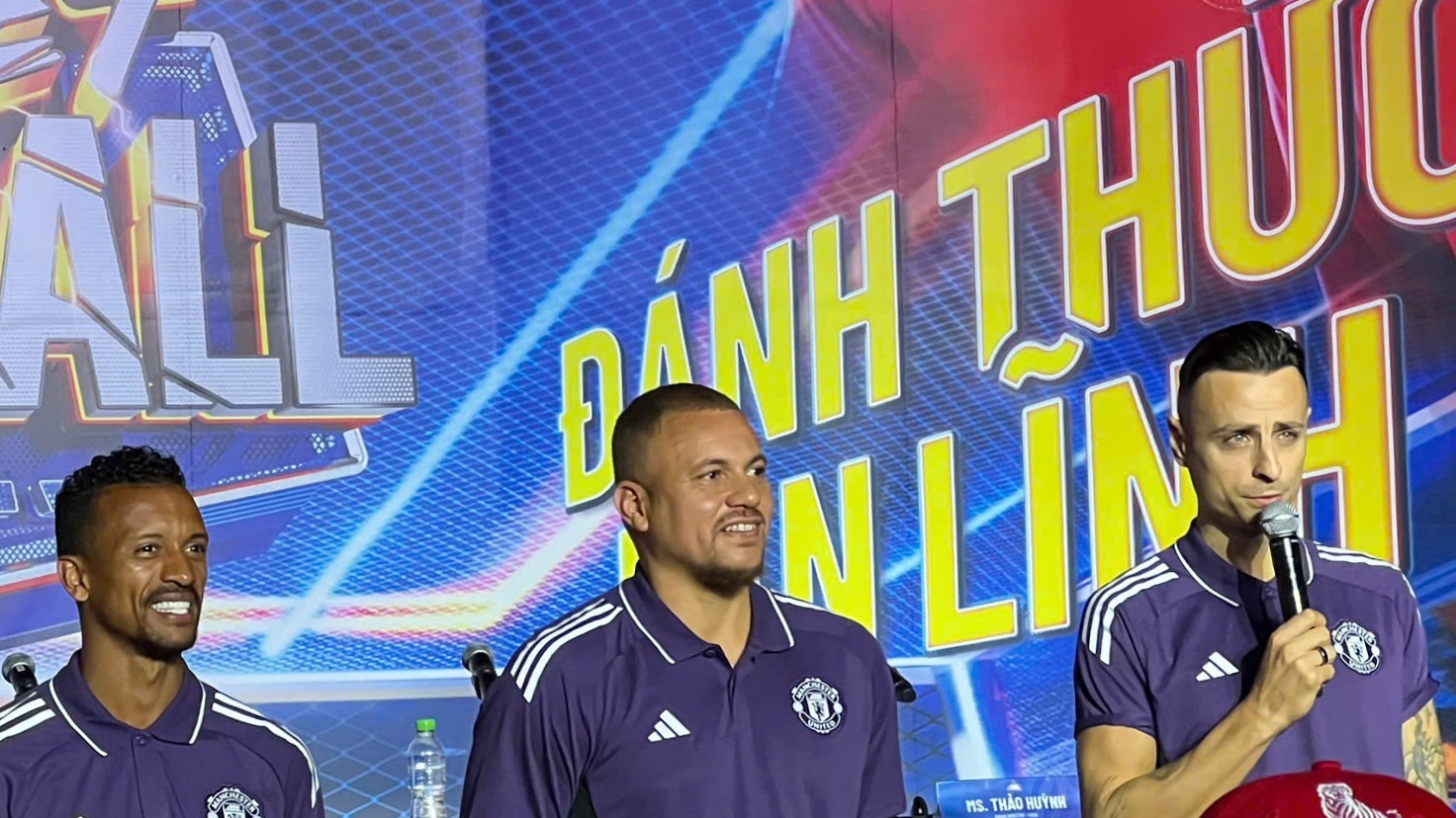 Berbatov (phải), Brown và Nani xuất hiện trong một sự kiện tại TP.HCM.