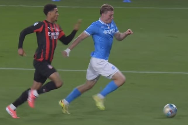 Xét lịch sử đối đầu, Napoli và AC Milan có thành tích đối đầu cân bằng trong 20 cuộc chạm trán gần nhất, khi mỗi đội giành chiến thắng 7 lần và cùng 6 lần bất phân thắng bại. Do vậy màn so tài lần này đã diễn ra ngang tài, ngang sức. Cả hai đội cống hiến cho khán giả trận cầu hấp dẫn với những pha đôi công mãn nhãn. Tuy nhiên, Napoli là đội tận dụng tốt các cơ hội khi vượt lên dẫn trước ở phút thứ 39. Bàn thắng được ghi bởi David Neres. Đến phút 63, Rasmus Hojlund có bàn thắng ấn định chiến thắng 2-0 cho Napoli. Với kết quả này, thầy trò Antonio Conte đã xuất sắc vượt qua AC Milan để giành quyền chơi trận chung kết Siêu Cúp Italia mùa giải năm nay.