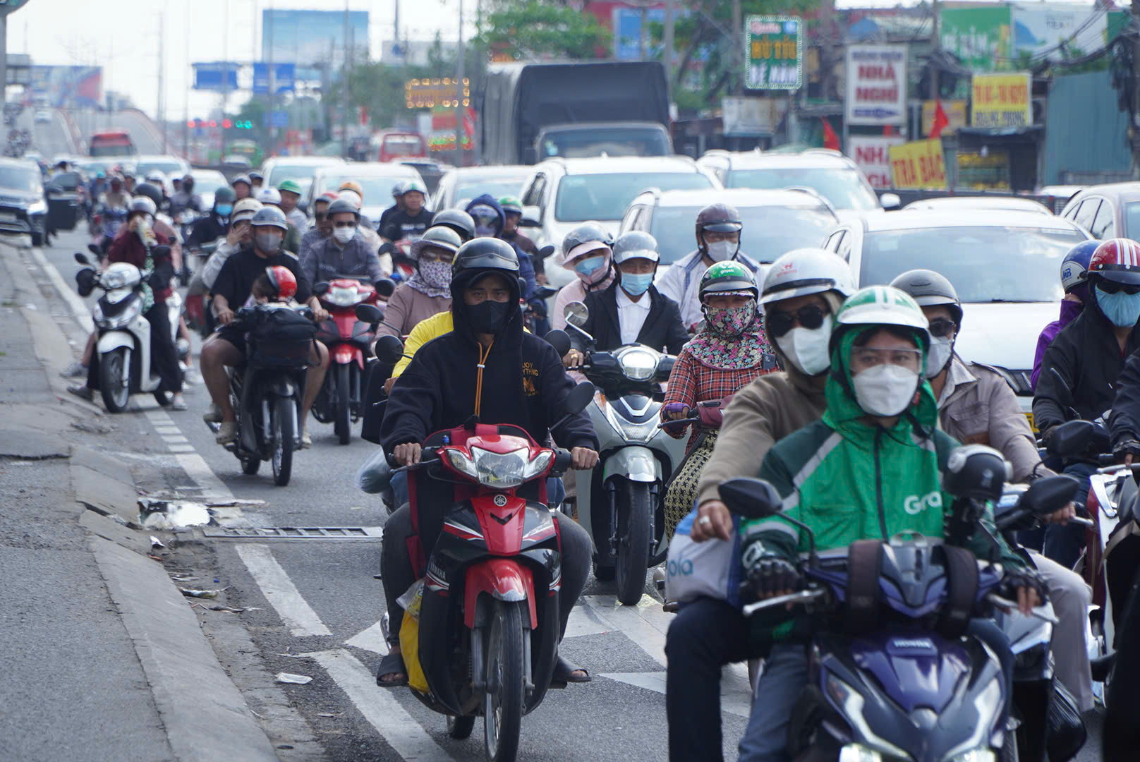 Các phương tiện di chuyển với tốc độ ổn định, không ghi nhận tình trạng ùn ứ cục bộ tại các điểm nóng như cầu Bình Điền hay vòng xoay An Lạc.
