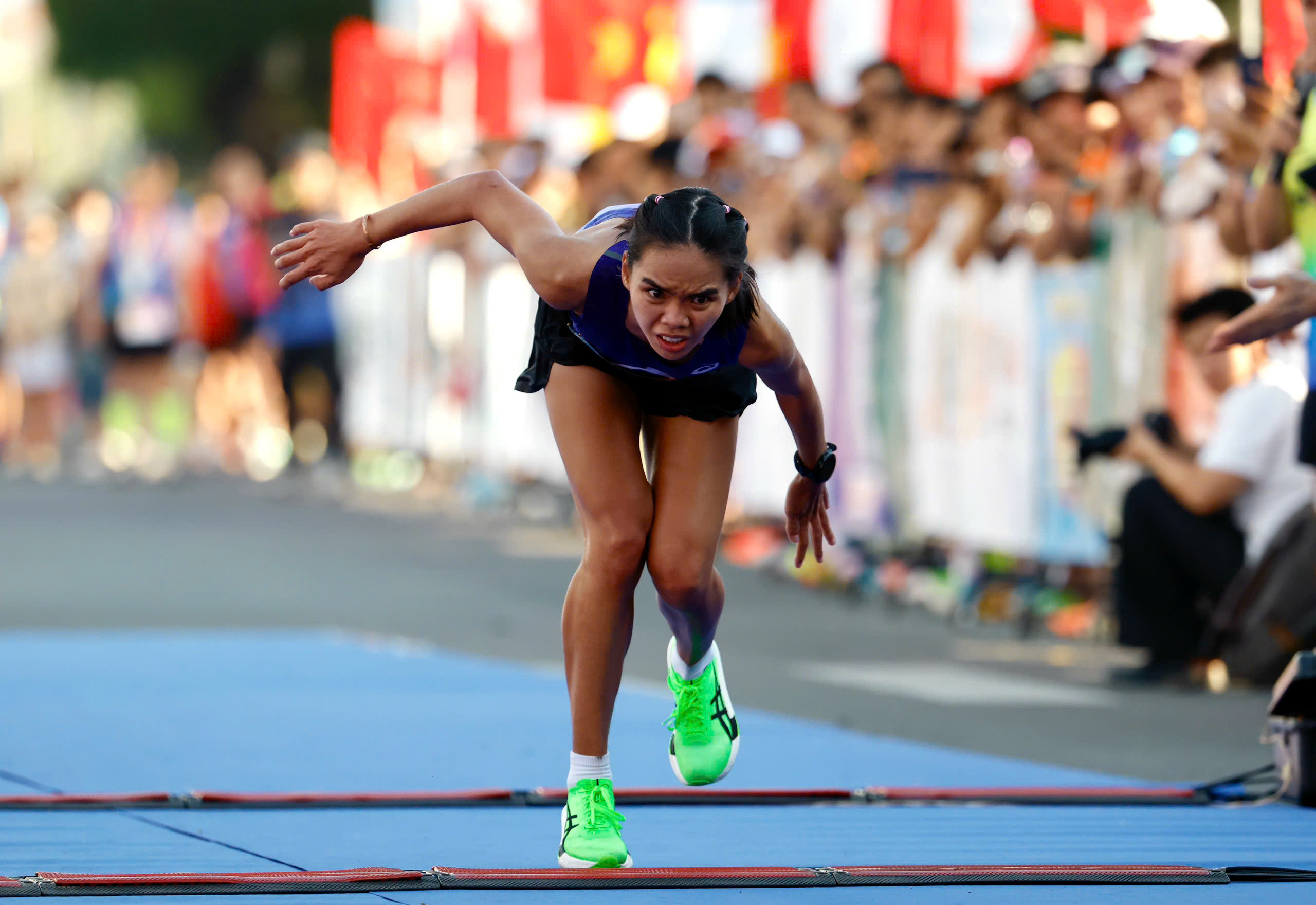 Video: Vận động viên Hoàng Thị Ngọc Hoa kiệt sức trước vạch đích nhưng không bỏ cuộc.