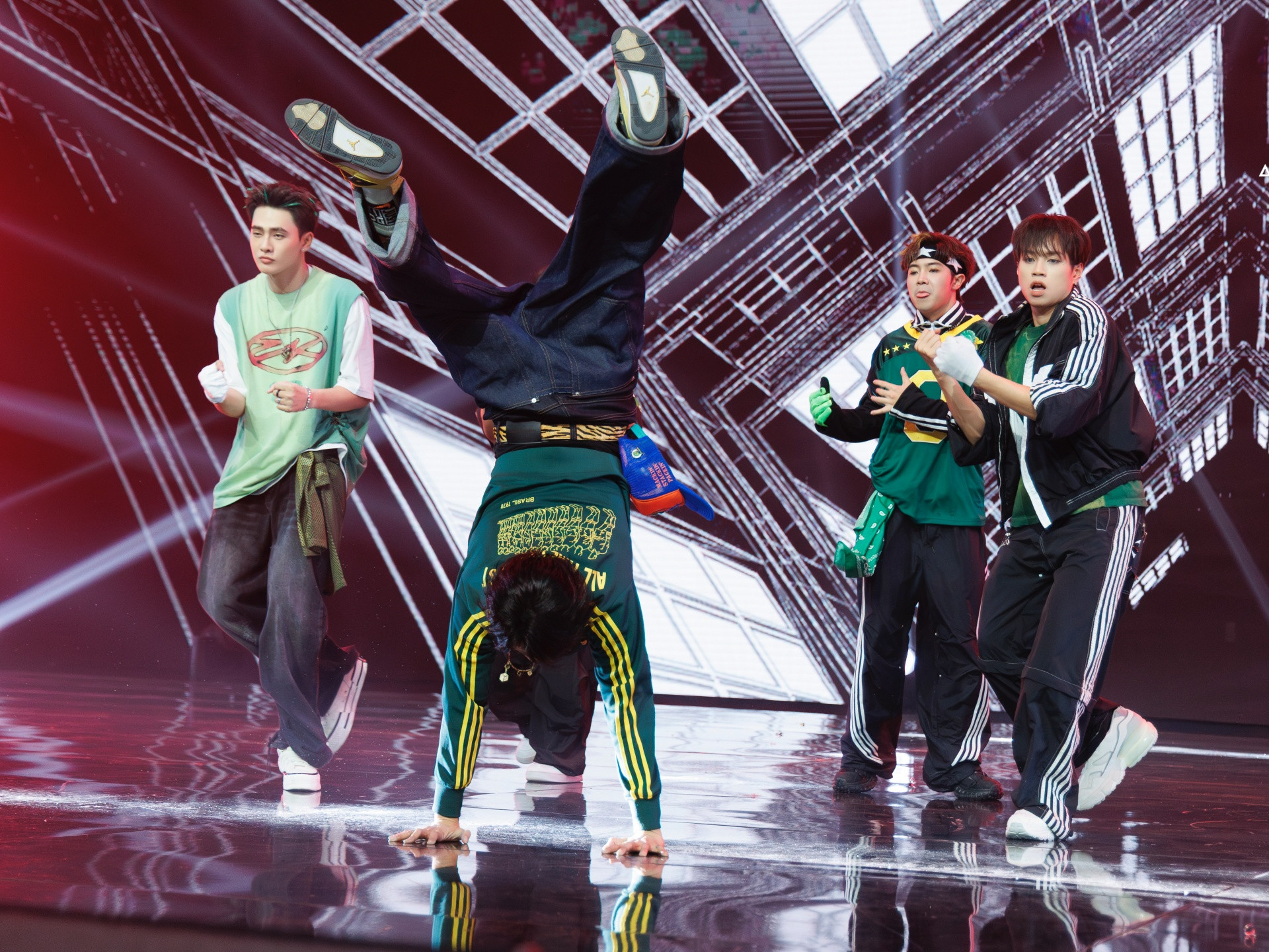 Đội Ngô Kiến Huy khuấy động sân khấu với loạt kỹ thuật khó, Sơn.K bất ngờ vén áo khoe cơ bụng. Đội BigDaddy gây ấn tượng với phong cách Squid Game hài hước với điệu nhảy “xoay compa” dí dỏm của đội trưởng.