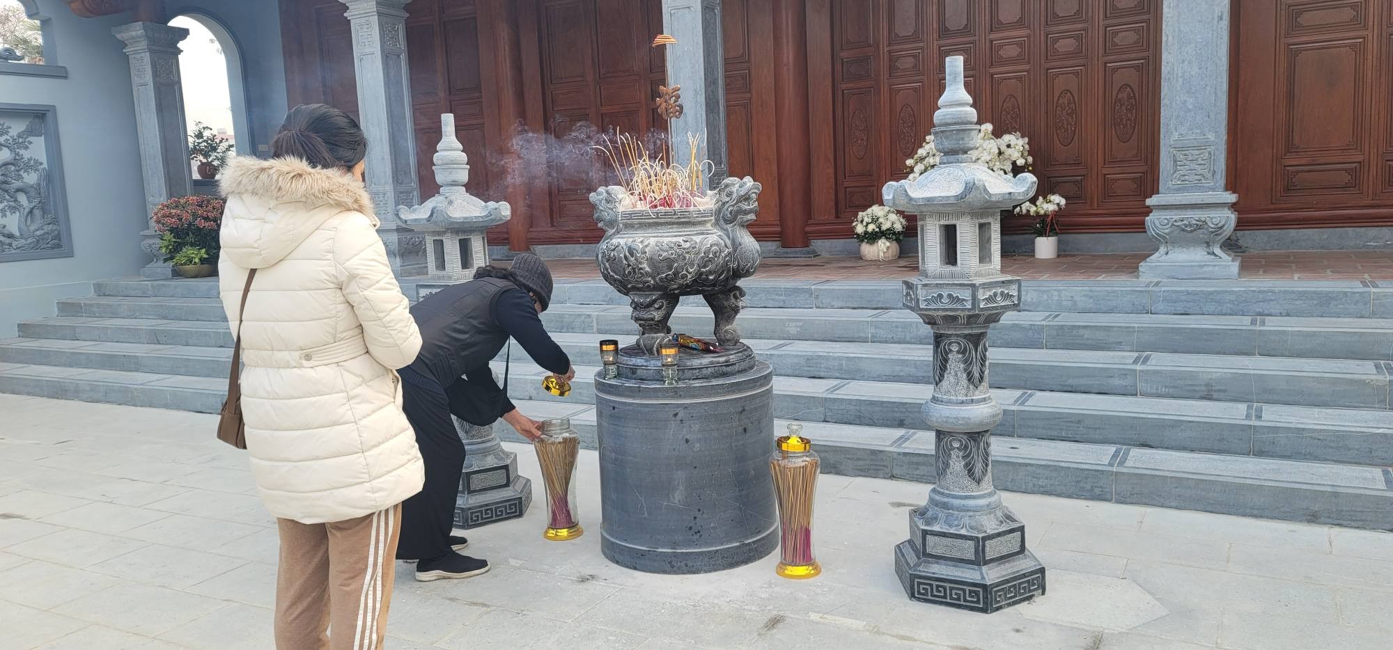 Cách Nhà Tưởng niệm không xa, là một chiếc lư hương siêu đại bằng đồng, cao hơn đầu người, nặng hàng tấn, sẵn sàng tiếp nhận các đồ hóa...