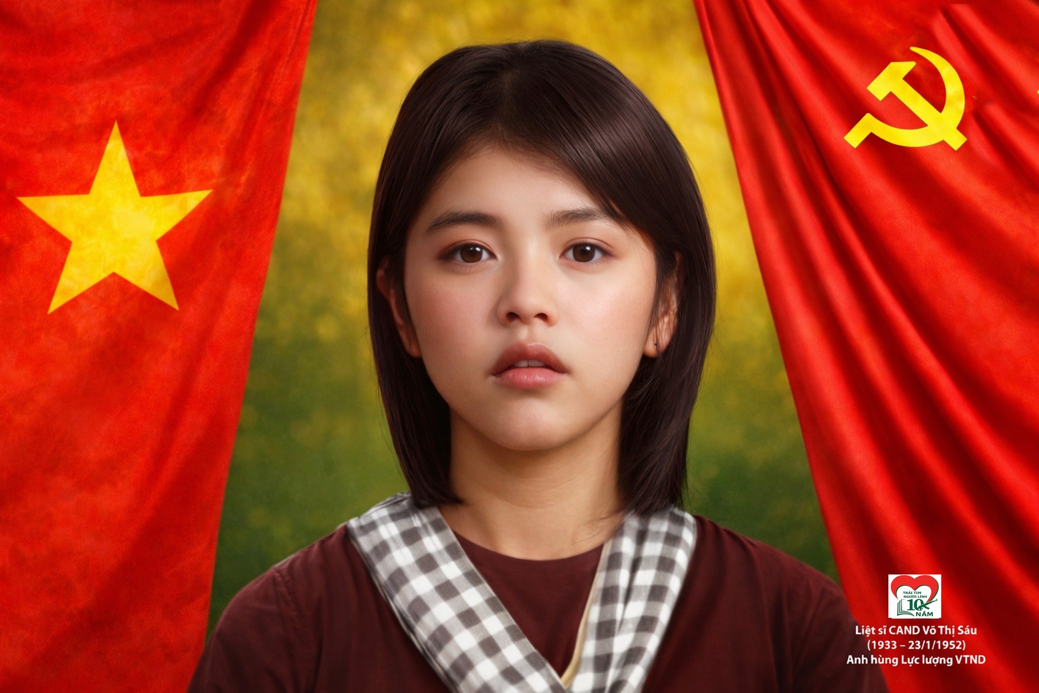 Chân dung Anh hùng LLVTND Liệt sĩ Võ Thị Sáu vừa được "Trái tim người lính" phục dựng màu.