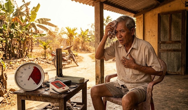 Thực tế ghi nhận trong những đợt nắng nóng 38–40°C, số ca nhập viện vì tim mạch, tăng huyết áp và đột quỵ thường gia tăng đáng kể.