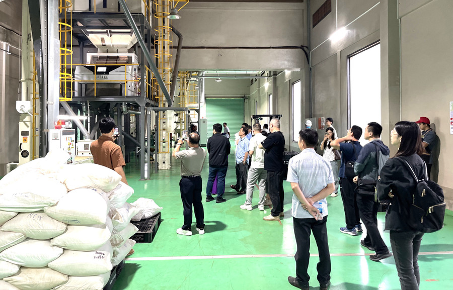 Đoàn doanh nghiệp Quảng Tây (Trung Quốc) tham quan xưởng sơ chế của Công ty TNHH Sản xuất và Dịch vụ Tam Ba (phường Diên Hồng). Ảnh: Vũ Thảo