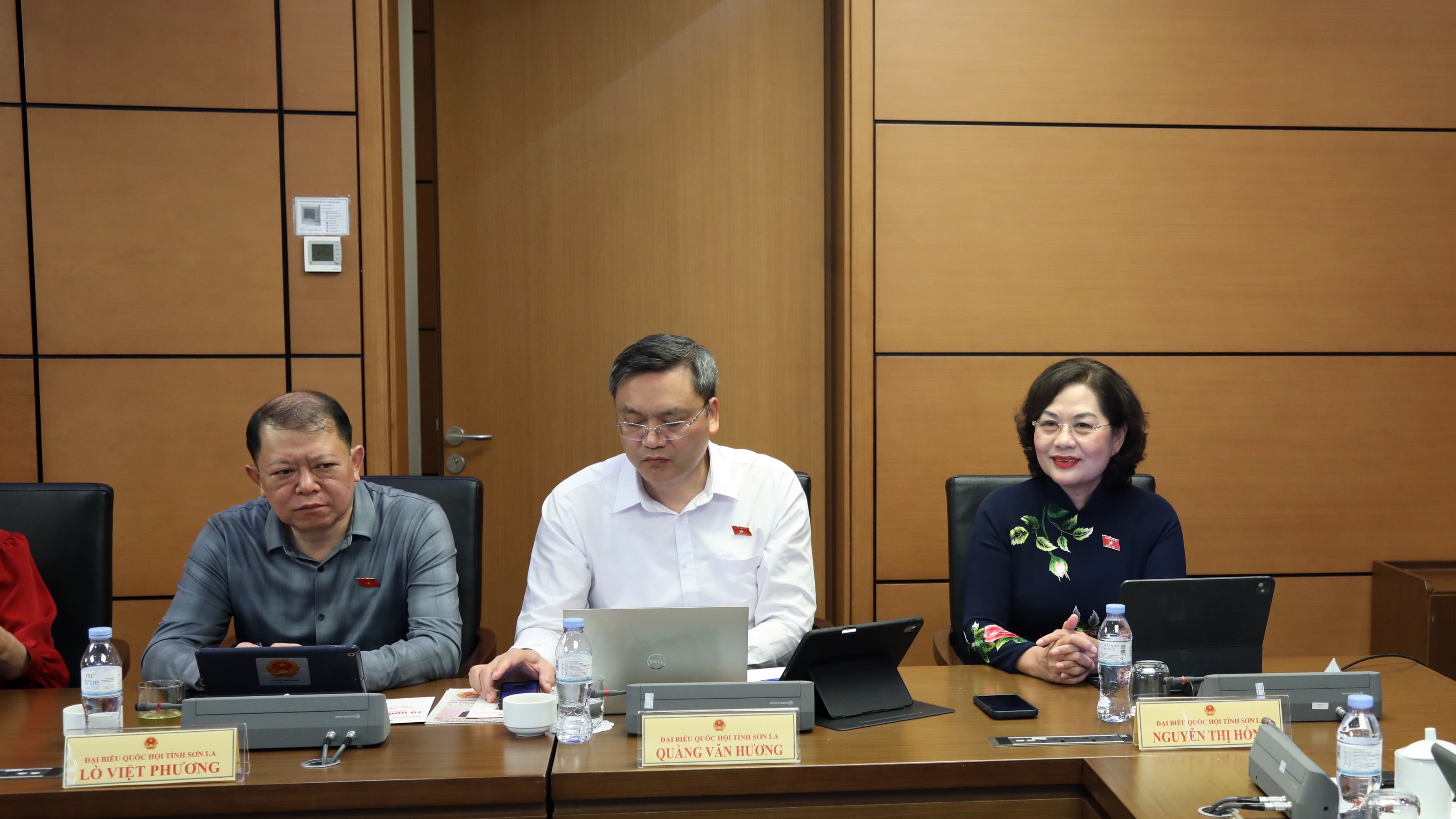 Phó Chủ tịch Quốc hội Nguyễn Thị Hồng và các ĐBQH tỉnh Sơn La tại phiên thảo luận Tổ 10