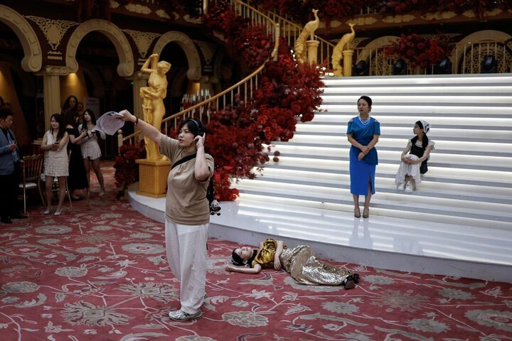 Một bộ phim ngắn với bối cảnh phòng tiệc trong phim trường tại Trịnh Châu, tỉnh Hà Nam, Trung Quốc. (Ảnh: Reuters)