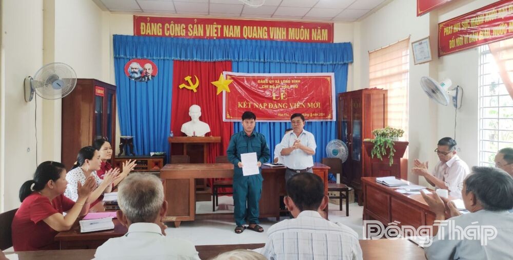 Chi bộ ấp Hòa Phú, xã Long Bình, tổ chức Lễ kết nạp đảng viên. Ảnh: KIM LAN