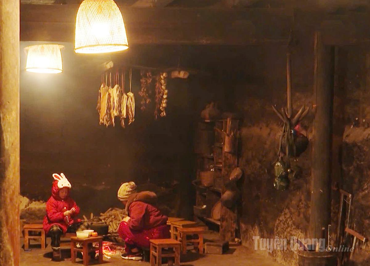 Không gian đặc trưng bên trong nhà trình tường của người Mông.