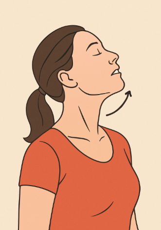 Ngồi thẳng lưng, ngửa đầu ra sau và hướng cằm lên trần nhà.