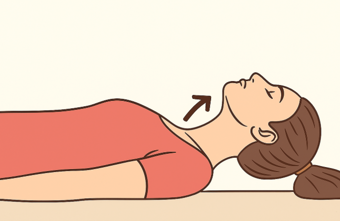 Từ từ nâng đầu lên, gập cằm về phía ngực. Giữ trong vài giây rồi từ từ hạ xuống vị trí ban đầu.