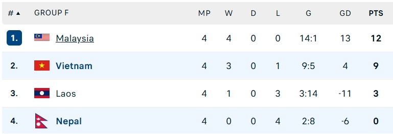 Thầy trò HLV Kim Sang-sik duy trì khoảng cách 3 điểm với Malaysia tại bảng F. Ở đợt tập trung vào tháng 11, tuyển Việt Nam sẽ đối đầu Lào, trước khi bước vào trận cầu quyết định với Malaysia vào tháng 3/2026.