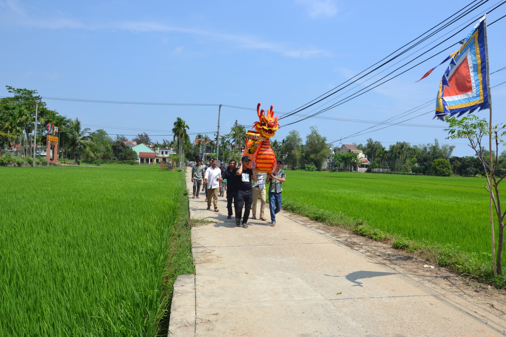 Một phong tục đáng chú ý là sáng mùng 1, người dân tổ chức dọn cỏ và dâng hương tại các ngôi mộ vô chủ trong xóm. Nghi thức này cho thấy ý thức tri ân quá khứ và tinh thần nhân ái của cộng đồng. Lễ chính diễn ra sáng mùng 2 tháng Hai âm lịch, bắt đầu từ miếu Thái Giám, tiếp đến miếu Bà Cổ, miếu Ngũ Hành, miếu Âm Linh và kết thúc ở bàn cúng cầu an ngoài trời. Nghi thức gồm các bước tế lễ, đọc văn tế, dâng rượu ba tuần, thọ phước, tống Long Chu ra sông và hóa vàng.