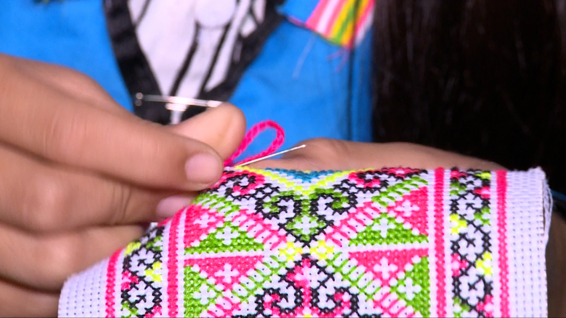Hoa văn thổ cẩm với đôi tay thoăn thoắt của phụ nữ Mông cùng những sợi chỉ rực rỡ màu sắc.
