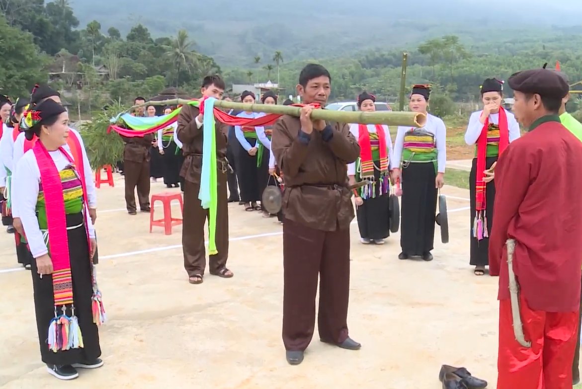 Thầy mo mường khấn thần linh xin cho bản Mường dựng cây nêu.