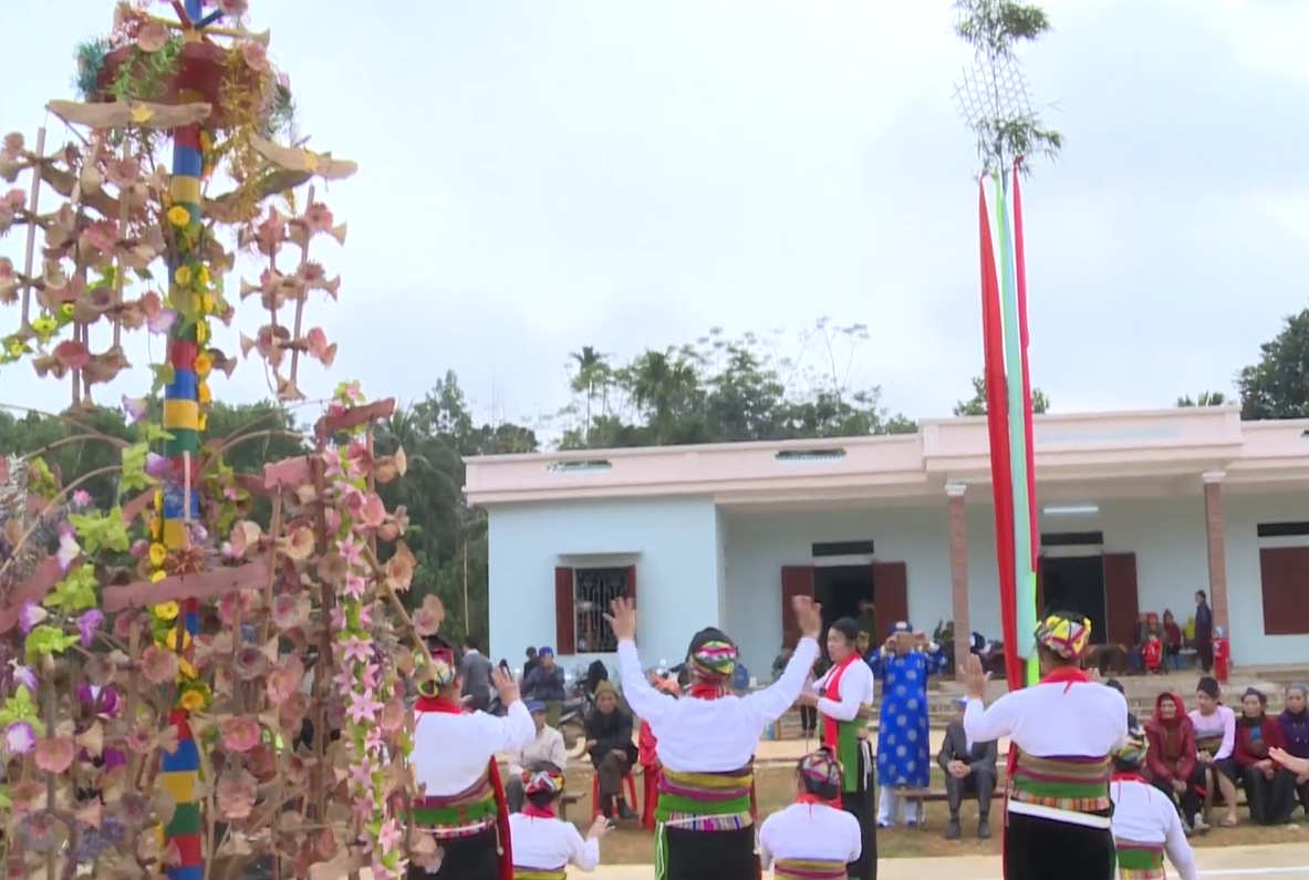 Bà con dân tộc Mường múa hát dưới cây nêu.