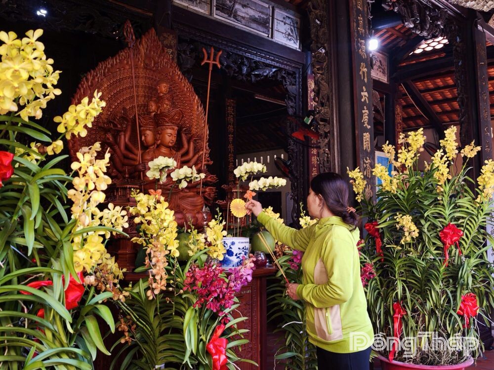 Ở Đồng Tháp, ngoài việc đi chùa, nhiều gia đình còn duy trì mâm cúng tại nhà với bánh trái, xôi chè, hoa tươi.