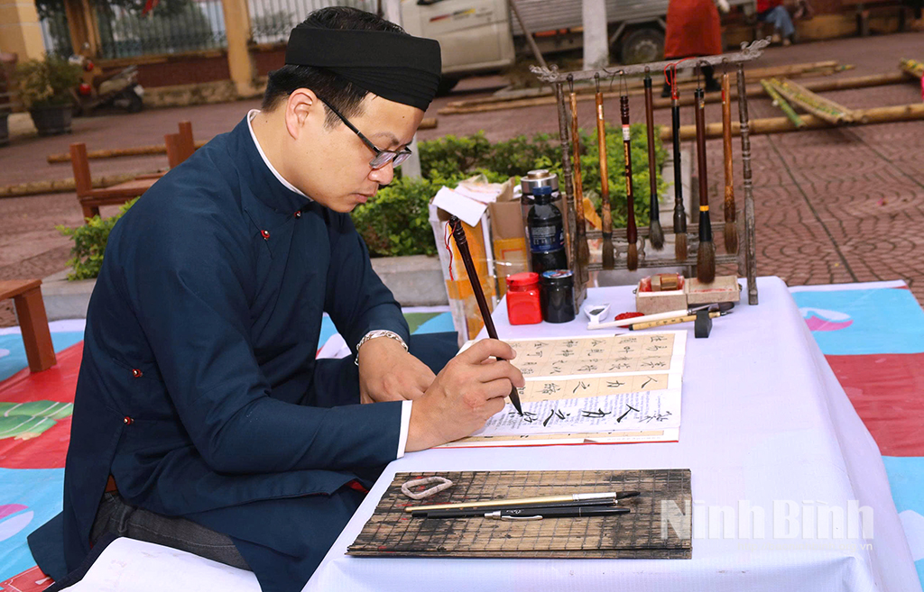 Hình ảnh ông đồ ngồi viết chữ thư pháp xuất hiện ở các di tích lịch sử văn hóa là nét đẹp đầu Xuân mới.