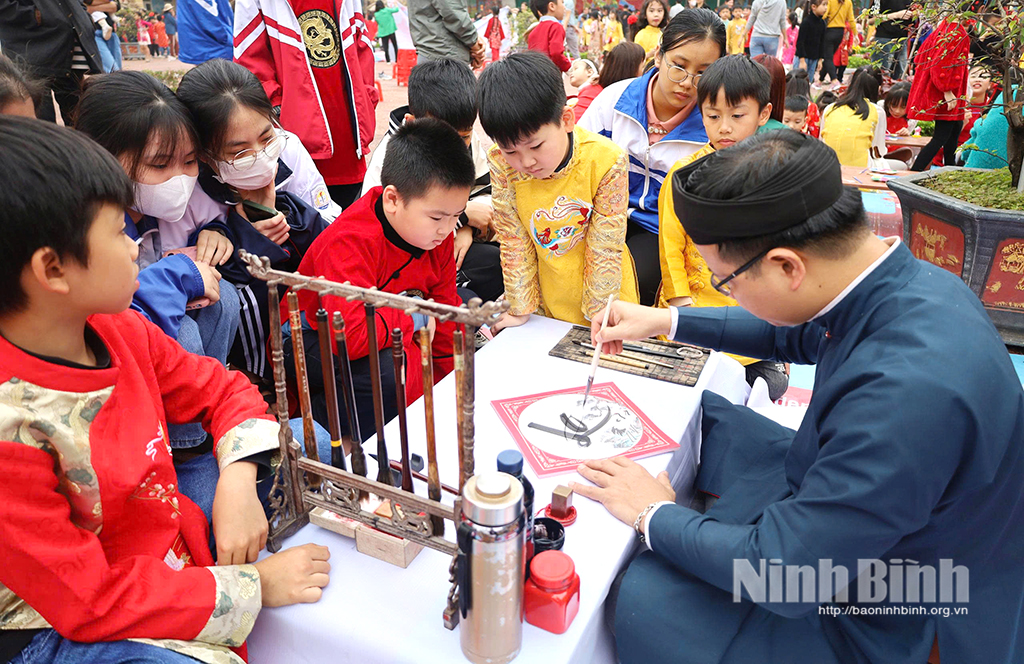 Mỗi dịp Tết đến, Xuân về, tại các danh lam thắng cảnh, các lễ hội, các khu du lịch tâm linh, đình, chùa… đều bắt gặp hình ảnh các “ông đồ” ngồi bên nghiên mực, giấy đỏ mải mê, tỉ mỉ viết chữ, cho chữ thư pháp. Ngày Tết, Văn Miếu - Quốc Tử Giám (Hà Nội) là địa điểm đông người đến xin chữ. Được xây dựng năm 1076, Văn Miếu - Quốc Tử Giám là biểu tượng cho truyền thống hiếu học, tôn sư trọng đạo và là cội nguồn của tri thức của dân tộc ta.