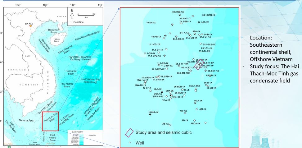 Bể trầm tích Nam Côn Sơn được các nhà khoa học đánh giá có khả năng lưu trữ carbon lớn. Ảnh chụp slide trình bày tại hội nghị.