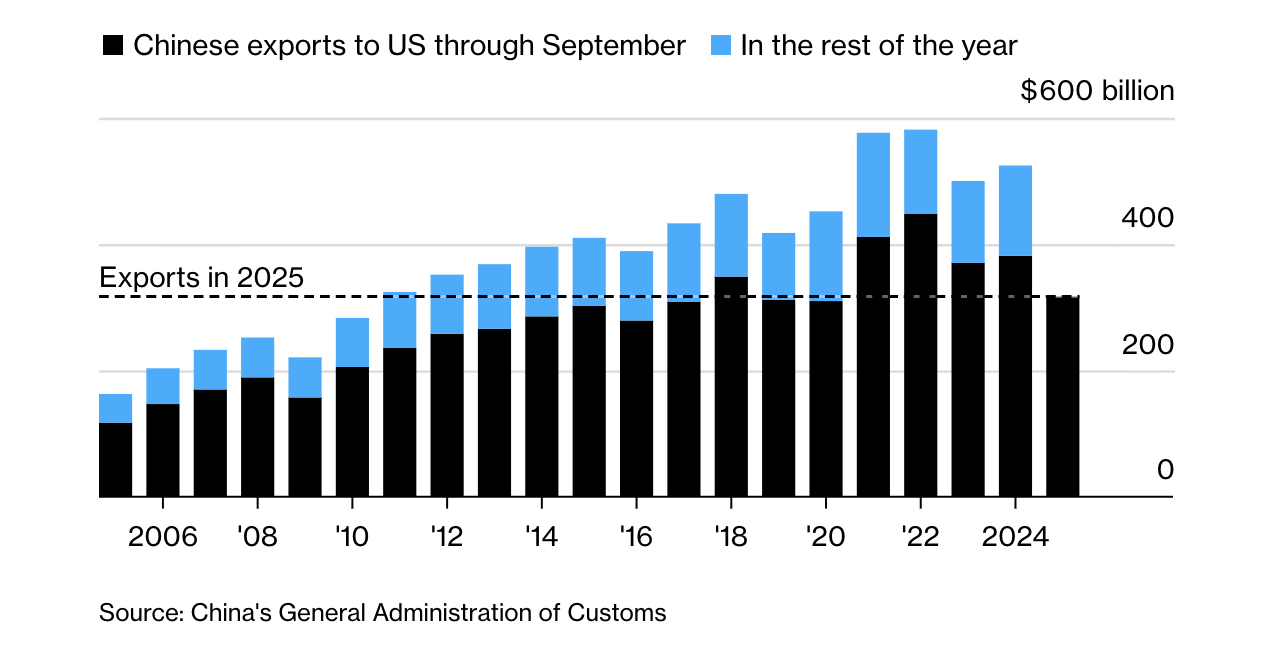 Xuất khẩu của Trung Quốc sang Mỹ đã giảm 17% trong năm nay. Ảnh: Bloomberg.