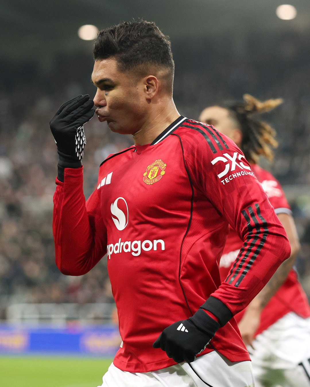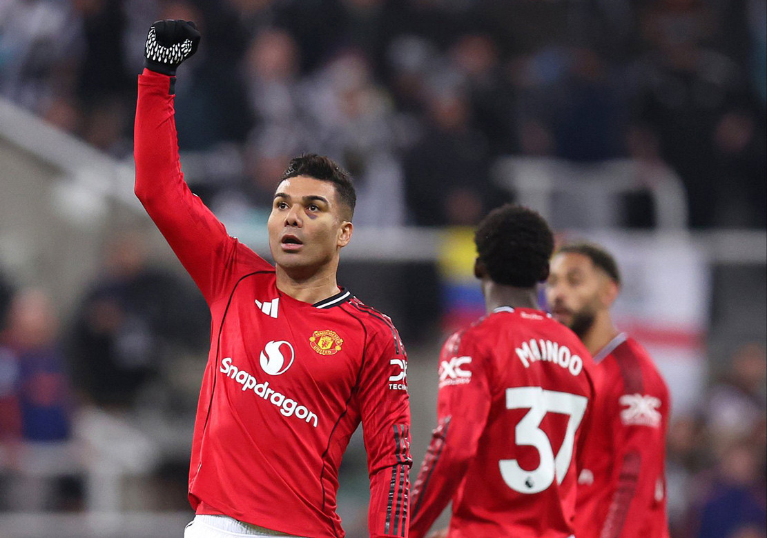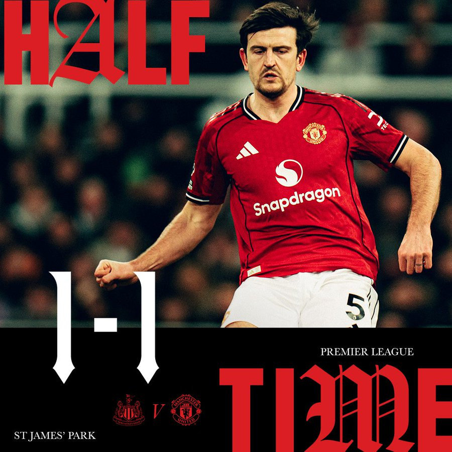 Ở thời khắc bù giờ cuối cùng hiệp một, Bruno Fernandes đá phạt chính xác cho Casemiro đánh đầu hiểm hóc san hòa 1-1